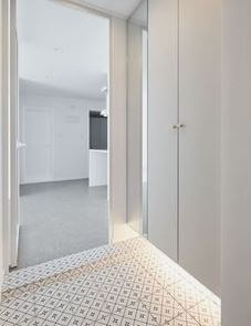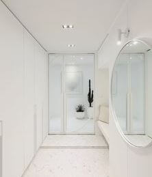 공간을 최대로 사용하려면 입구에서 동선이나 흐름을 방해하지 않도록 슬림한 콘솔 테이블을 배치하고, 콘솔 위에 거울을 올려두면 시각적으로 공간을 더욱 확장시킬 수 있고 빛을 반사하여 더 밝고 개방적인 느낌을 줄 수 있습니다.