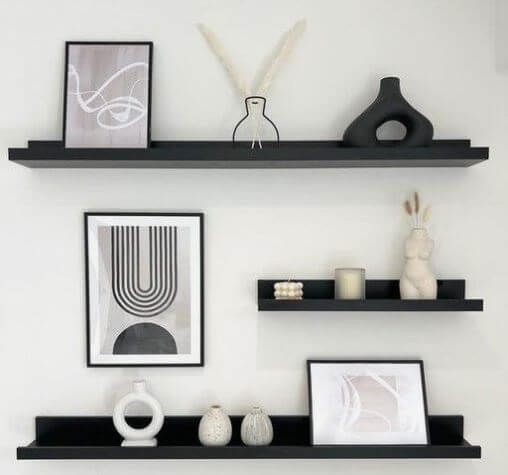 벽에 예술 작품을 걸거나 사진이 담긴 갤러리를 만들면 근사한 전시 공간으로 변신할 수 있습니다. 여기에 꽃병, 조각품, 식물과 같은 아기자기한 장식용 소품을 추가하는 것도 좋습니다.